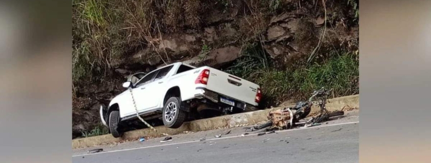 Acidente entre moto e caminhonete mata duas pessoas na BR 262 em Ibatiba