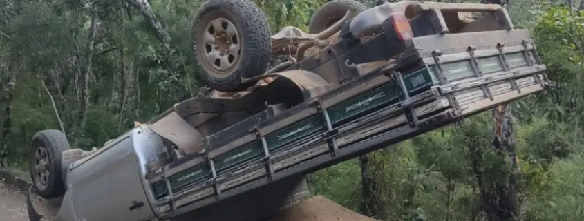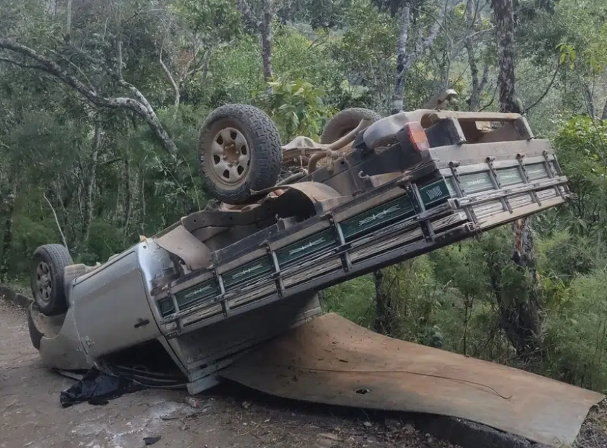 Na imagem, é possível ver que a caminhonete parou próximo de uma ribacnceira, com as rodas para cima. O nome e idade das vítimas não foram divulgadas. O veículo foi retirado do local do acidente na última segunda-feira (19).